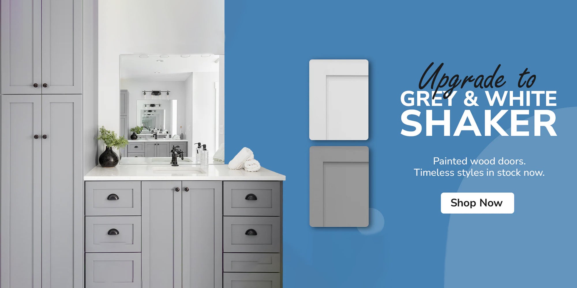 Explore our most sought-after options, including classic white and modern grey shaker cabinets.