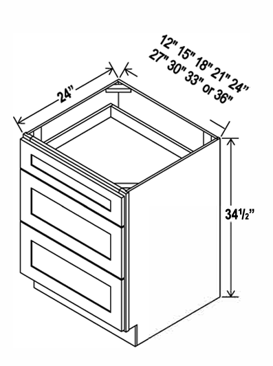Kitchen 3 Drawer Base , 24" , Shaker , PVC White